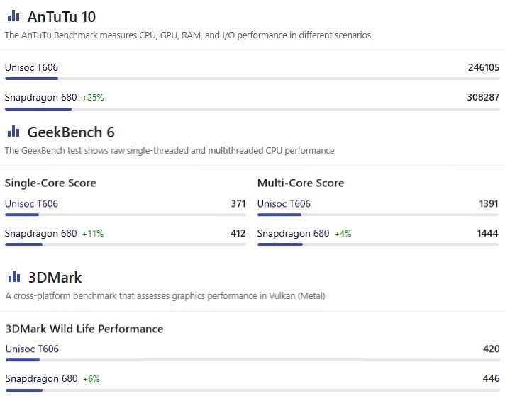 One of the most disappointing changes lies in performance. The Unisoc T606 powering the Vibe2 falls significantly short of the Snapdragon 680 used in the first-generation Vibe. Benchmark comparisons on platforms like Geekbench, AnTuTu, and 3DMark all show the Snapdragon 680 outperforming the Unisoc chip across CPU and GPU metrics.
